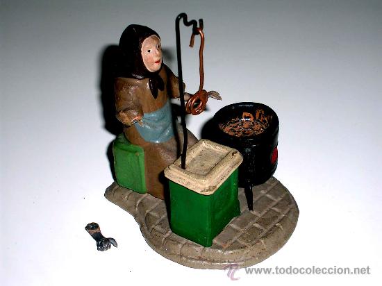 Queridos foreros, he visto a la venta en todocolección, algunas figuras de casteñeras que han suscitado mi dormida curiosidad sobre esta entrañable, cálida y tradicional figura de nuestros belenes (creo que coincido con Drake). Me gustaria que colgarais alguna foto de esta figura, de alguno de nuestros artesanos clásicos o modernos y actuales. Pongo las que he visto a la venta.