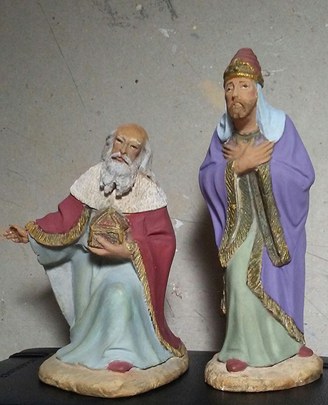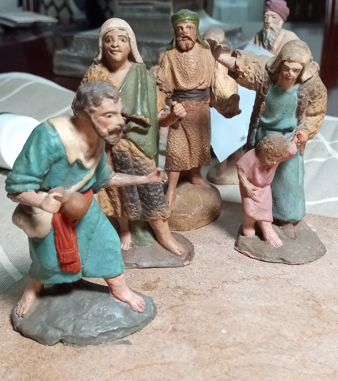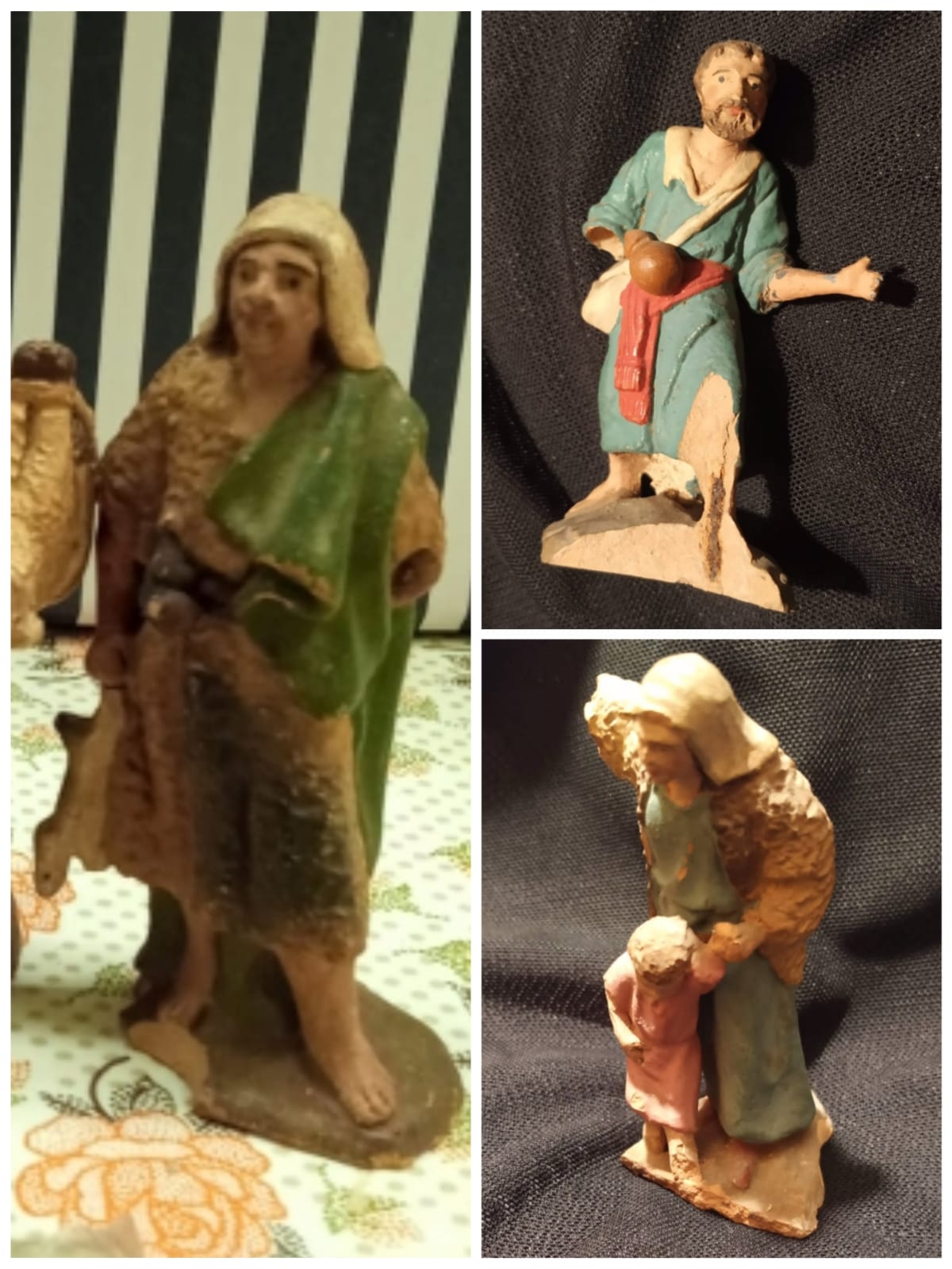 Son faltas por abandono como la pérdida de brazos(plomo), rotura de peanas, piernas/vestimentas y desgaste del barro...su restitución no le quita antigüedad y si le da más vista.