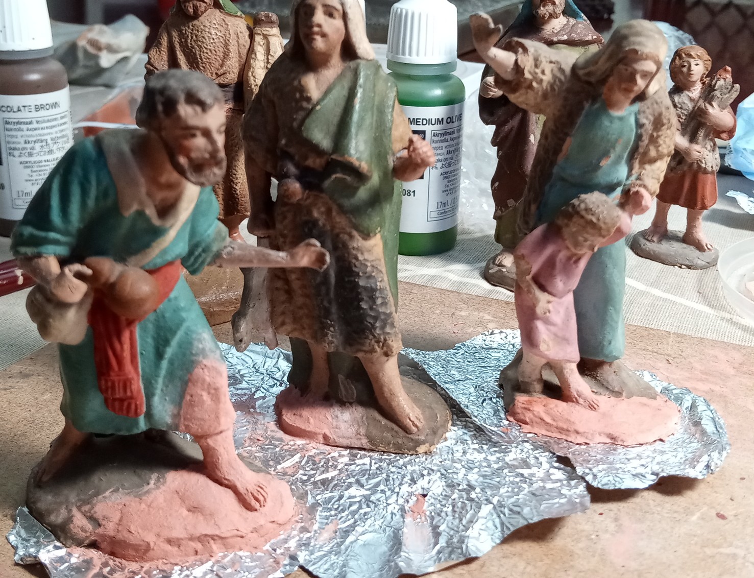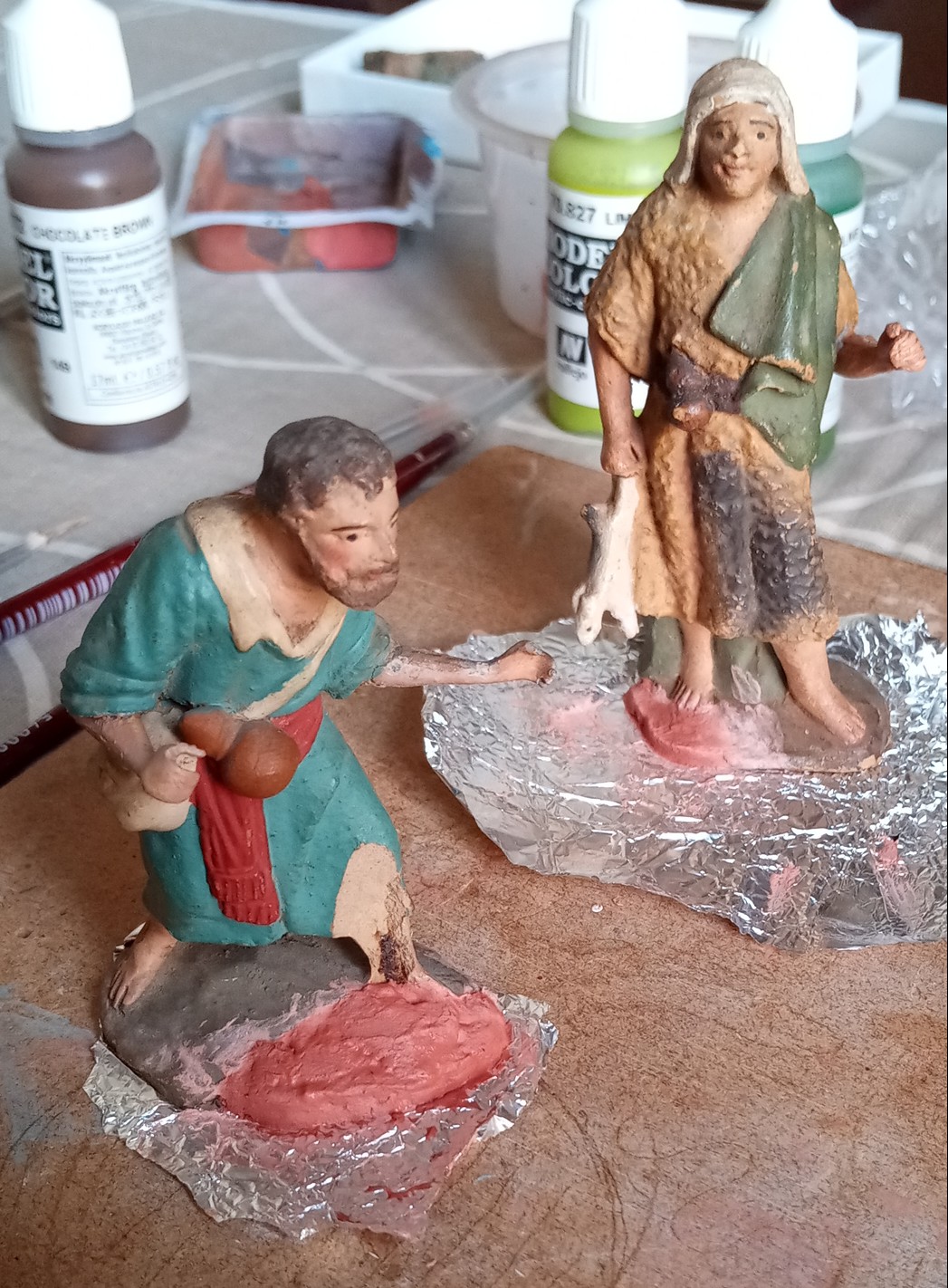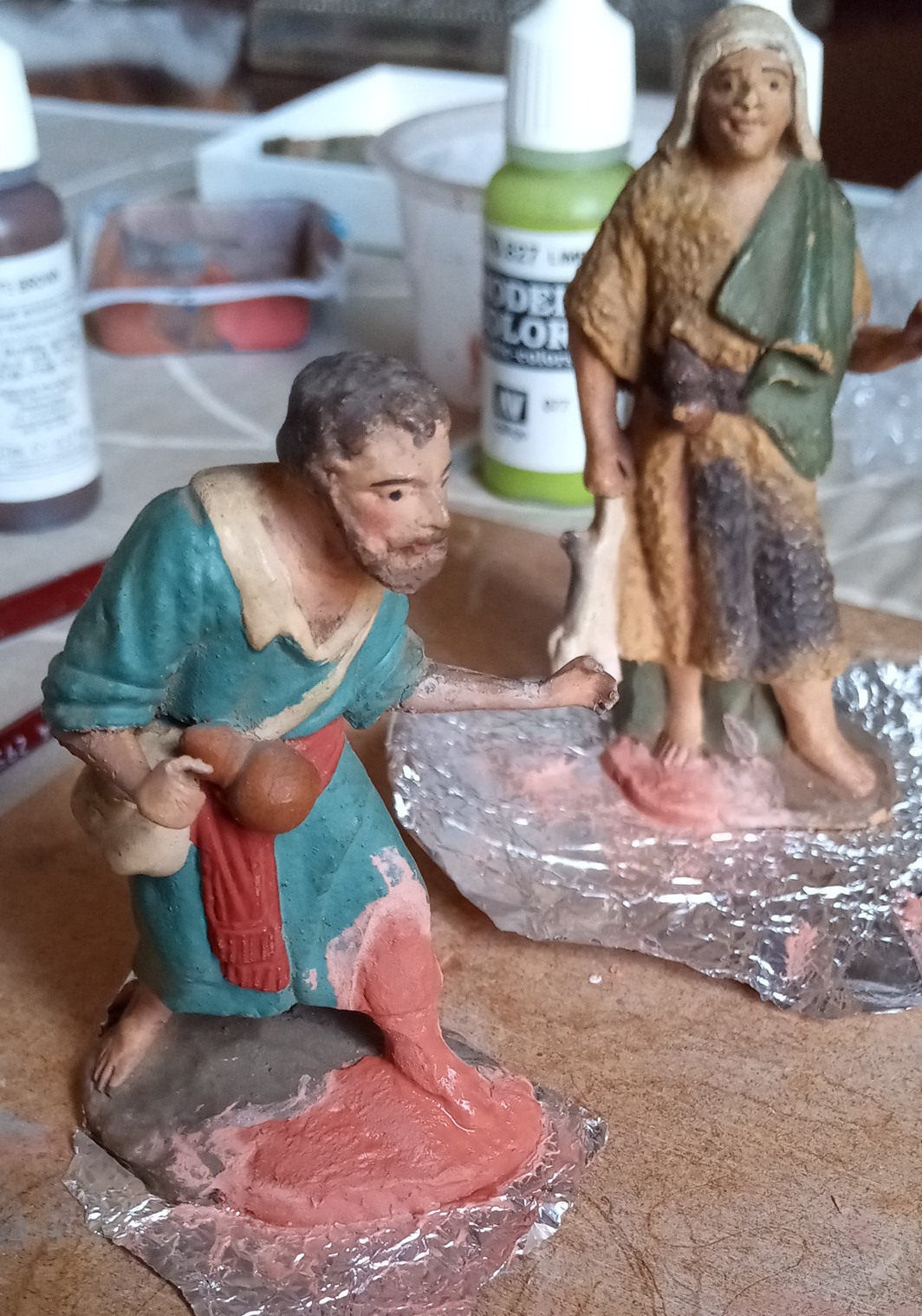 La policromía con acrílicos, la parte difícil la de buscar los colores parecidos.