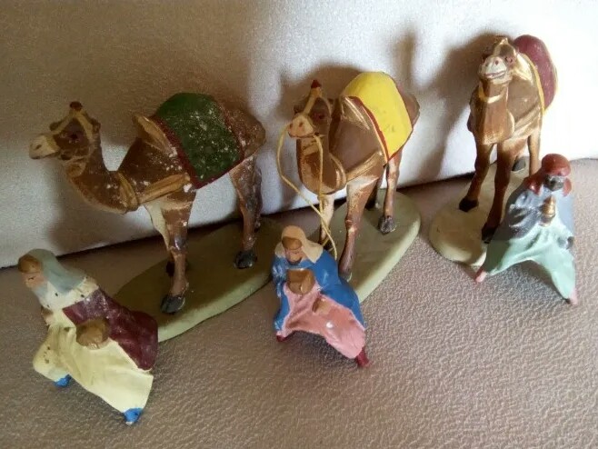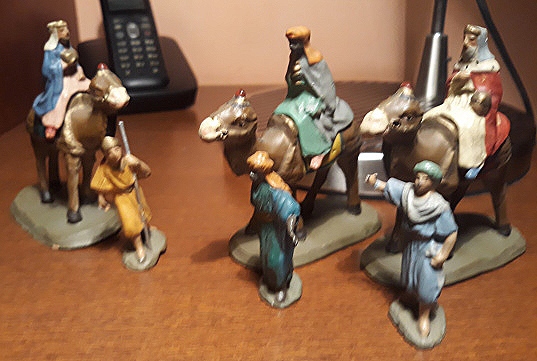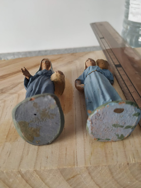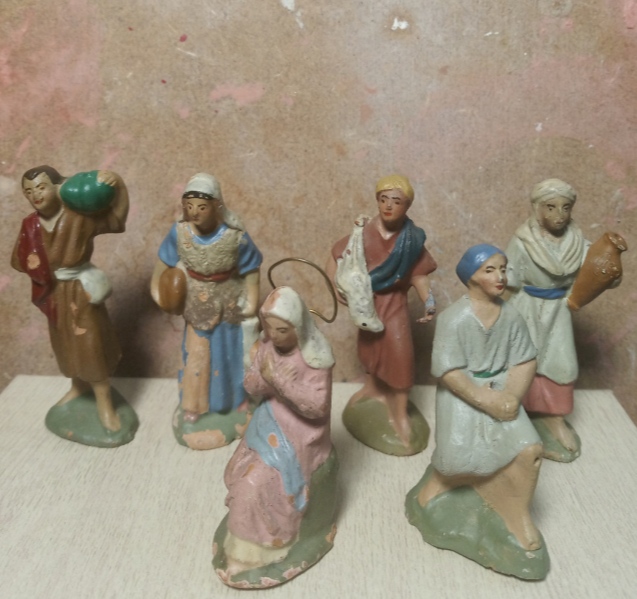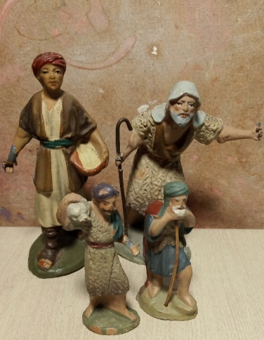 Es una busqueda y para empezar, son unas figuras de terracota de cierta antigüedad de formato pequeño ( hay dos: 5,5-6 y 9-10cms.) y que casi todos hemos visto o tocado alguna vez, y que por lo menos a mi me parecen con cierta calidad y me recordaban a algo como de toda la vida, recuerdos de cuando era pequeño cuando aun jugaba a vaqueros e indios con mis hermanos...y hacíamos el belén en casa por Navidad.