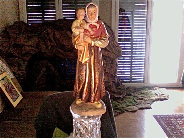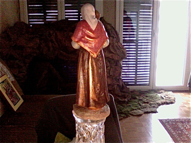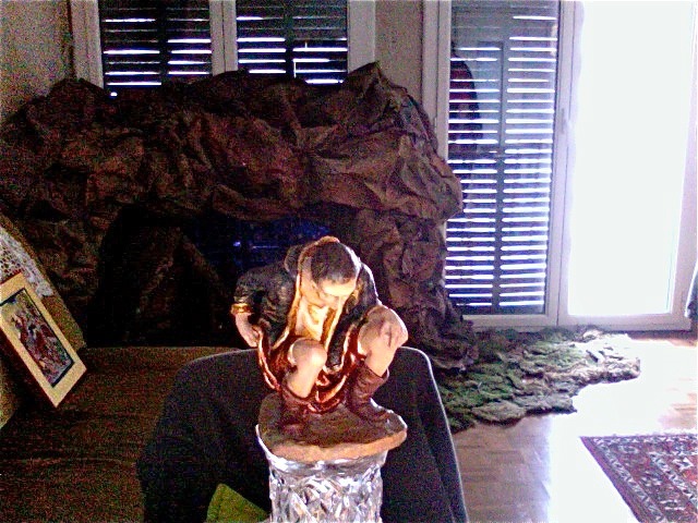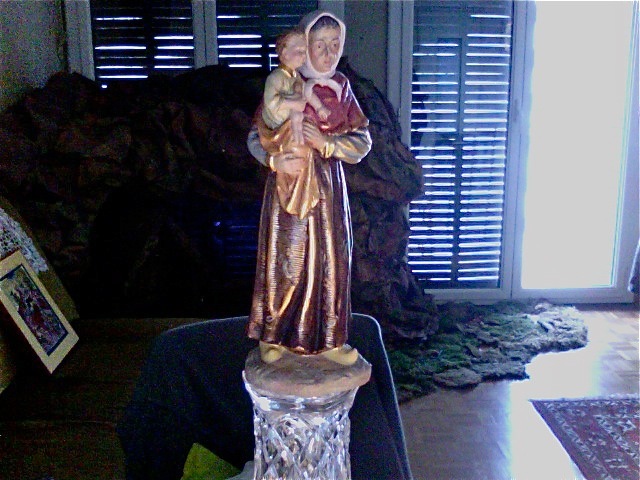 este año al desmontar por la Candelaria el Belén , he tomado por casualidad y con la camera de mi ordenador estas fotos de dos figuras de Olot , mirad qué bonitas sus figuras regionales ! son ambas del taller del " Arte Cristiano "