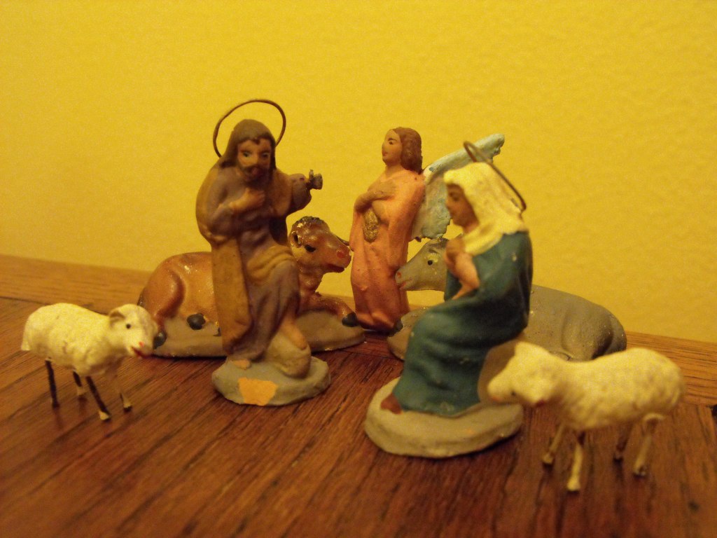En la tercera foto se ve un misterio muy pequeño, de 5 cm al que le falta el Niño, de una calidad no tan mala como los típicos de "cacharrería". El san José tiene la mano izquierda de plomo, al igual que los cuernos del buey y las orejas de la mula.