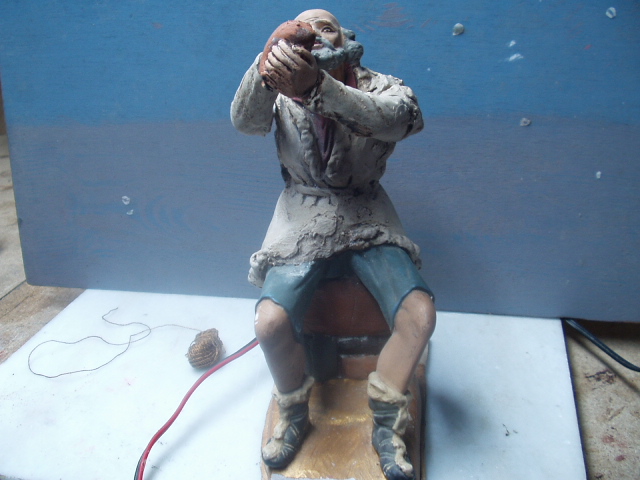 La figura que me ha tocado recoger hoy y que he fotografiado es un pastor bebiendo vino de una bota. Este personaje me comentaron que les hizo mucha gracia cuando lo vieron por primera vez.