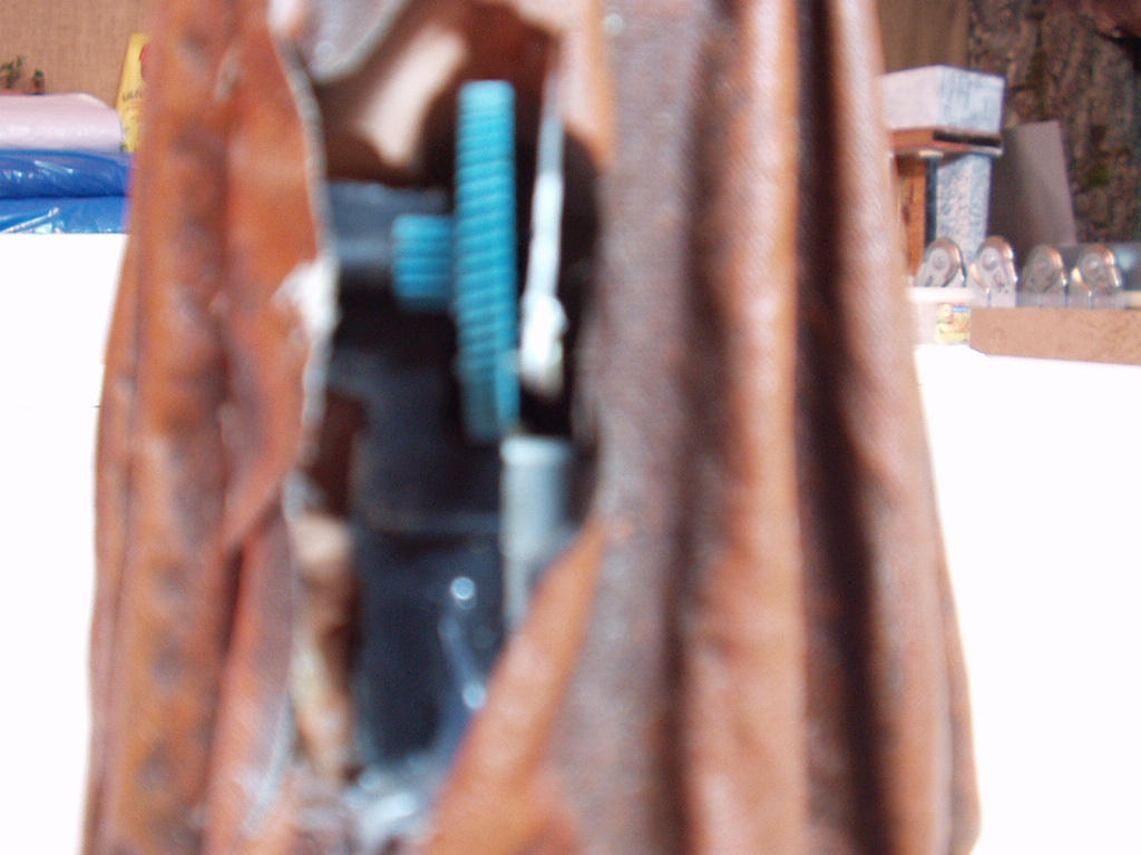 6. En el cuerpo del labrador lleva insertado el motor que es el que mueve el sedal gracias al tornillo que veis en la foto, que a su vez hace que suban y bajen los brazos.