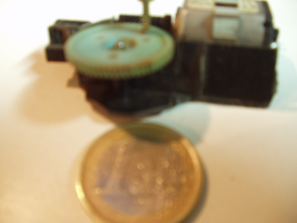 1. El motor que lleva incorporado es el que utilizan los lectores de cd's para desplazar la lente (este sí que hay que desmontarlo y para que se vea de donde se saca he incluido una foto con el interior de un lector de cd's).
