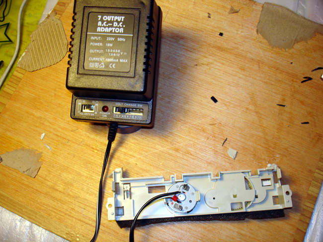 Quiero llamar la atención sobre que el alimentador, que es variable, puede sustituirs epor otro tipo de fuente de alimentación. Con la que se incluye, un vulgar alimentador casero, puede comprobarse que al variar la tensión, paso a paso, la velocidad no varía, es decir que está regulando bien.
