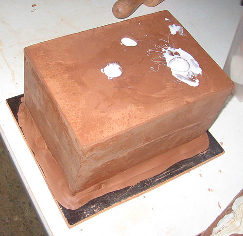 ... jejejeje, para que nadie se asuste aclaro que lo que se ve es la parte exterior del molde, dentro está la figura rodeada de silicona fraguando, que es eso blanco que se ve por los agujeros...