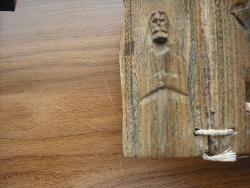 la talla es posible que sea de palo santo, y de Santiago del Estero, es más dificil conseguir talladores que cerámistas, la talla no es de los wichís(son de otra zona), que son los aborigenes que tallan madera, porque son más pulidas.