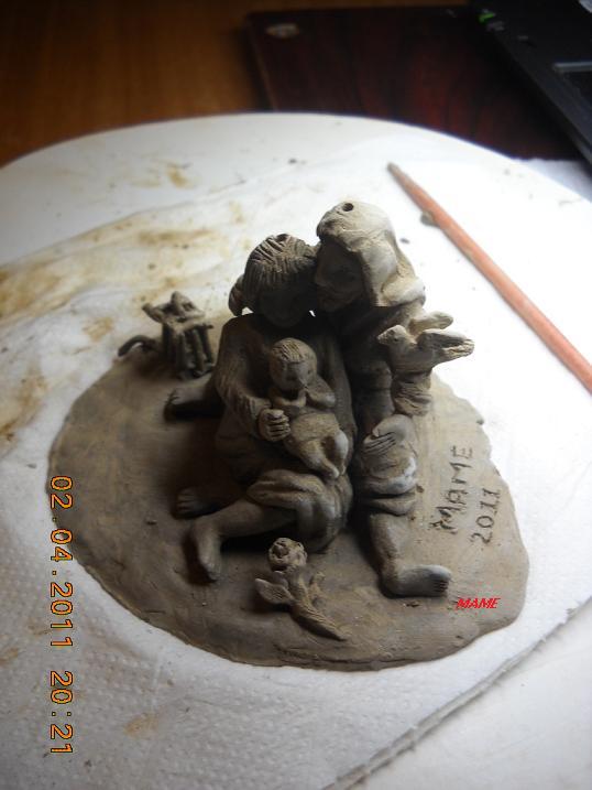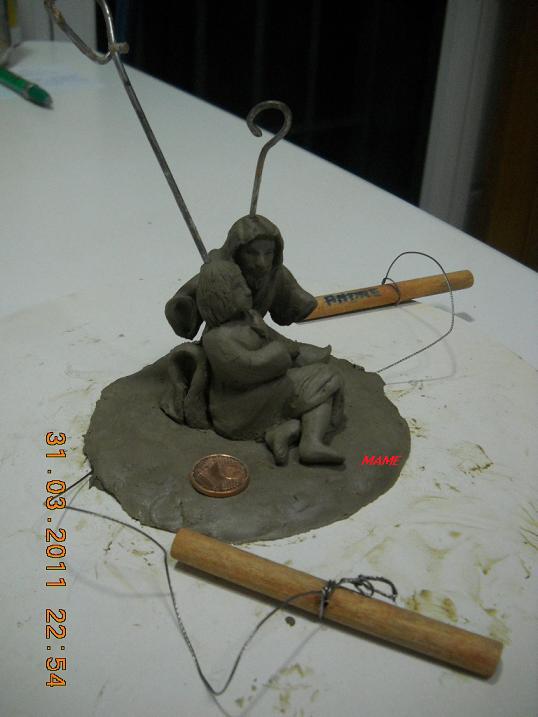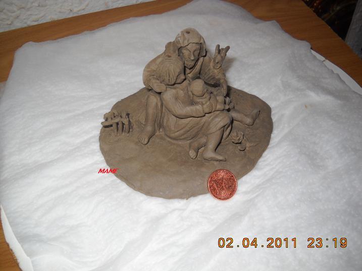 Mame se ve una evolución de tus trabajos estupenda, desde la primera página de este hilo hasta esta última (por el momento) donde se puede apreciar como las facciones de las caras, las cabezas y los pliegues de la ropa, cojen mas aire, mas vida; yo solamente te diría un pero, y como ya sabes soy de pinceles, creo que las figuras mejorarian mucho si se hicieran veladuras de color que resaltasen los plieges de las túnicas, además los ojos los perfeccionaría pintandoles una motita muy pequeña de blanco para hacer el brillo natural de los mismos y los trabajaría mas para que no parecieran tan naïf, a menos que eso es lo que quieres hacer; solo son sujerencias para mejorar a mi entender, pero tu eres la artista, y ahi ya no me meto.