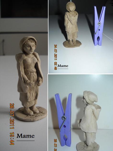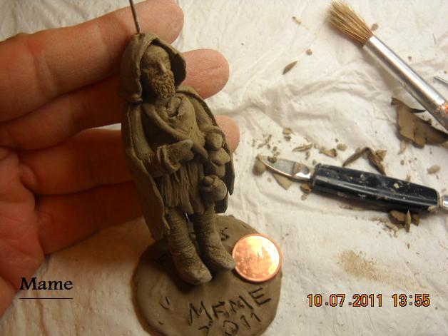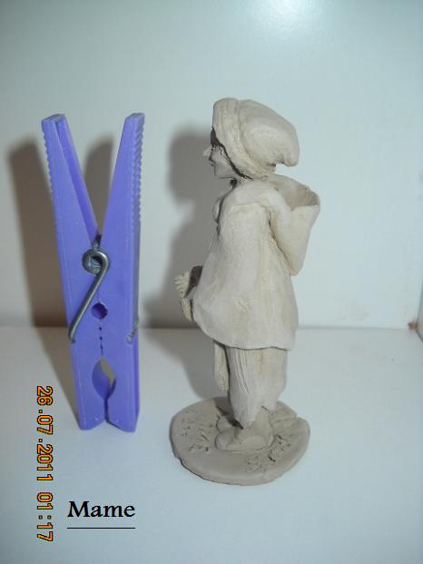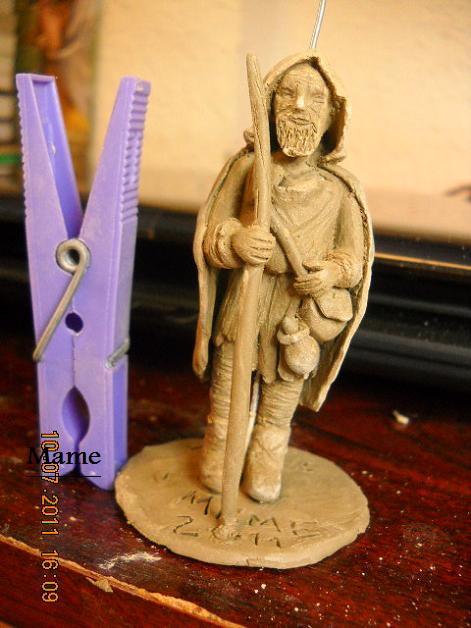 Pues que te voy a decir yo que no te hayan dicho los demás, se nota que cada vez tienes más soltura con el barro aunque como bien dices con el calor seguro que te ha costado sudor y lágrimas el terminar la figura, pero se te ha quedado estupenda, me encanta y el detalle de la "cantimplora calabaza" me ha gustado muchísimo jejeje Preciosa, si señor y con la buena mano que tiene Andrés con la pintura seguro que se queda espectacular.FELICIDADES DE NUEVO.