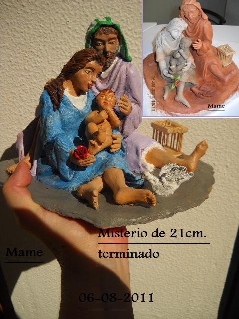 Hola Mame, hace tiempo que no entraba a ver tus trabajos, con los preparativos de la boda de mi hija etc, etc, no he tenido tiempo. me quedé en el alfarero pero sin pintar, y ahora con las manitas de Andrés con los pinceles está genial. Y ahora !sorpresa! veo misterios grandes, pequeños y unos ángeles también diminutos de "7 cm" que son una autentica preciosidad, tienen un candor y una belleza exquisita y para terminar ese pastor de la montaña más grande es una autentica obra maestra llena de detalles, en zurrón, sombreros, ropajes, botos... realmente espectacular.