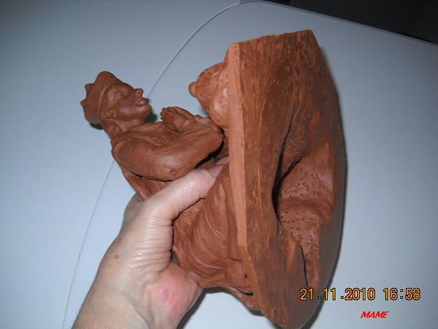 Muchas gracias Laica, por tu mensaje me das mucho ánimo, la verdad es que no sé si la figura ideal algún dia la haga, porque le doy de vueltas que no veas, y al final siempre me quedo con las ganas de haberle quitado o puesto, pero claro llega un momento que el barro se endureze aunque lo pulverise de agua, y ya tengo que dejarlo. Con el tiempo y la practica, a poquito a poco todo se va aprendiendo y mejorando. Un abrazo y recuerdos a tu marido, de Andres y Mame.