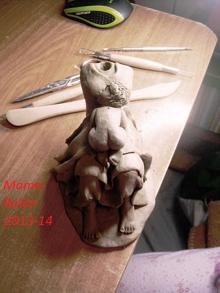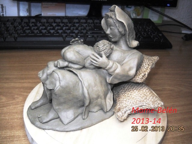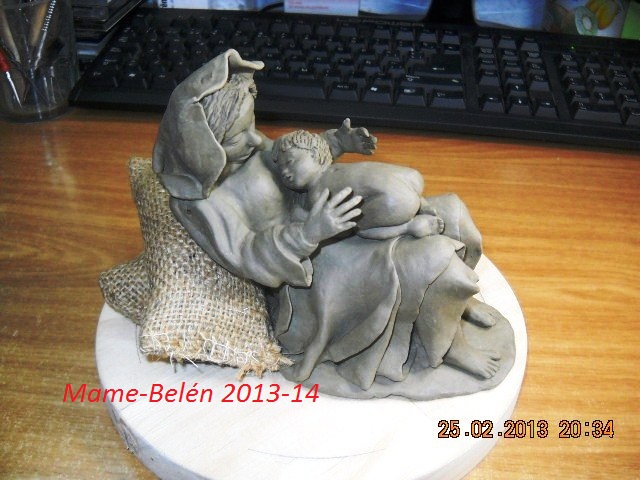 Hola Mame preciosa la figura, me gusta mucho sobre todo la posicion del niño te ha quedado de maravilla se nota que cada figura que vas haciendo te vas superando espero ver el nacimiento terminado , seguro que te va ha quedar de lujo . un saludo,