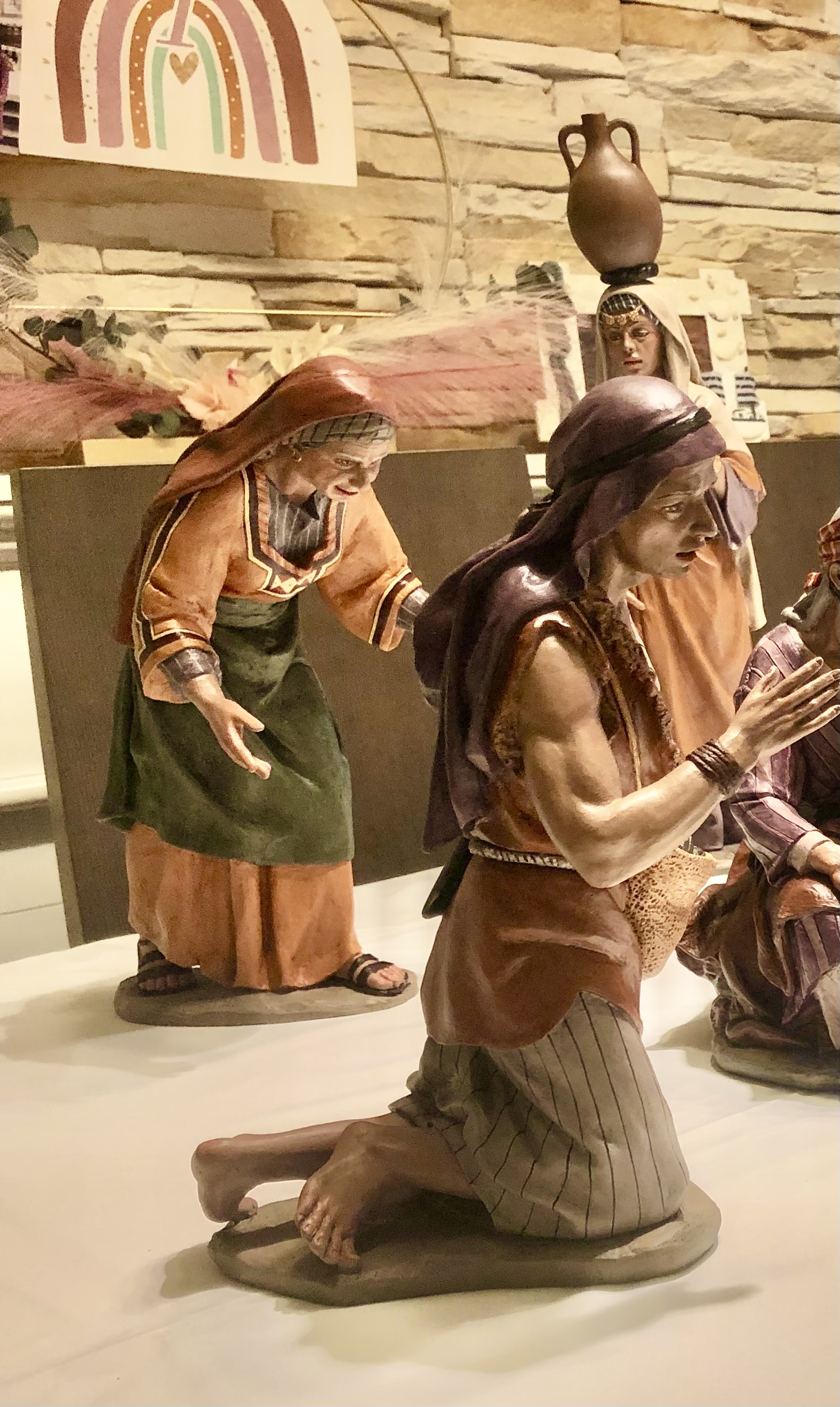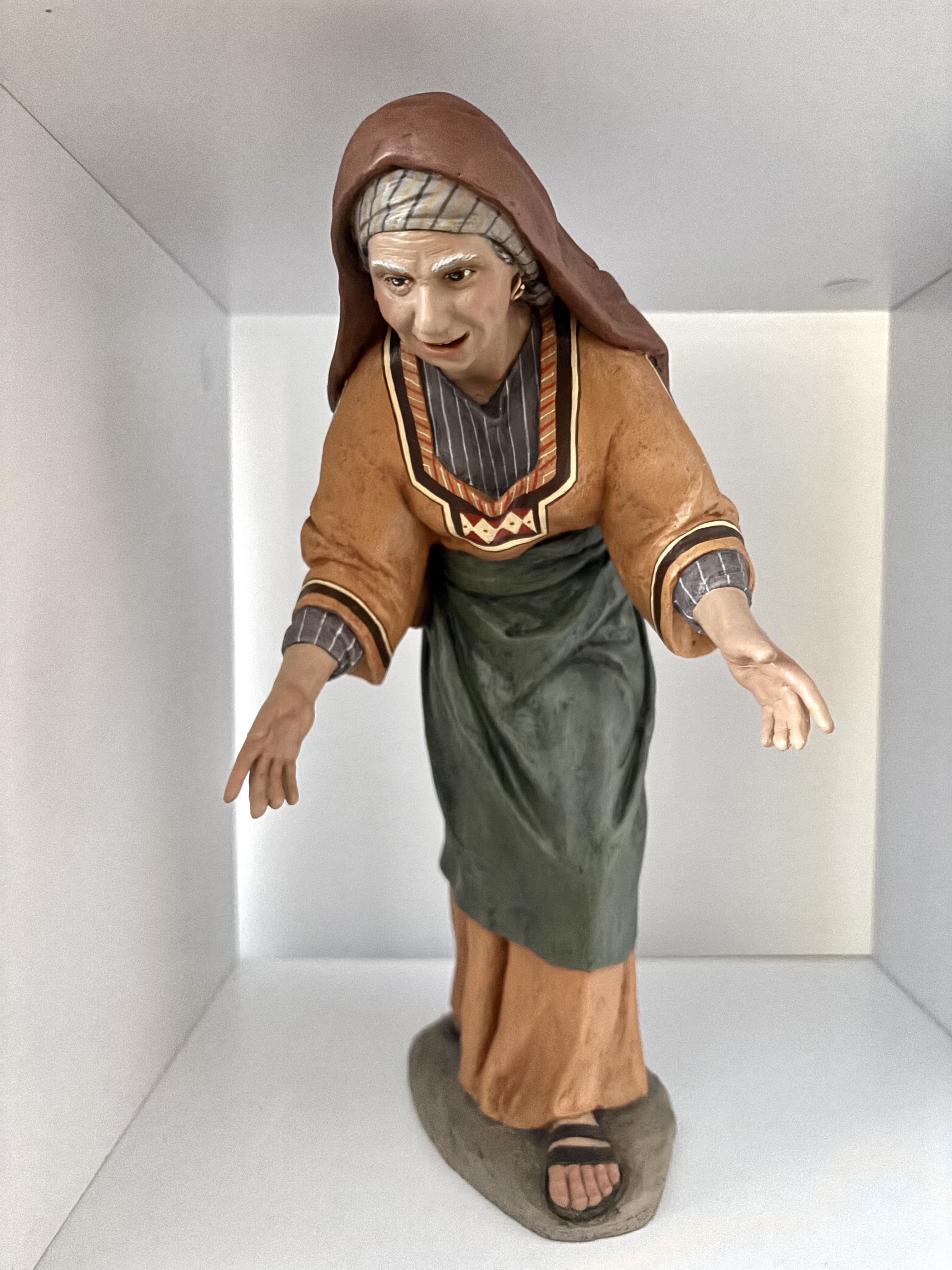 Pastora con cántaro en cabeza, Pastor adorando, Pastora anciana acachada.