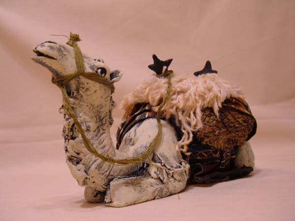 David, el camello de pie está hecho a trozos. Por un lado el cuerpo con la cabeza, por otro las patas, que despues de secas, las pegué sobre la base y el cuerpo, asi no es necesario poner estructuras base como tu dices.