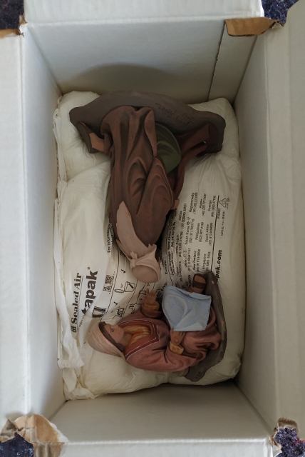 Es raro tanto la pasta como la terracota son resistentes a luz solar y a cambios de temperaturas, exactamente en donde estaban almacenadas, la exposición al agua o a cualquier líquido o ambientes muy húmedos las disgrega en cuestión de días o incluso de horas, sería bueno que nos mostraras las fotos de las figuras y del deterioro...