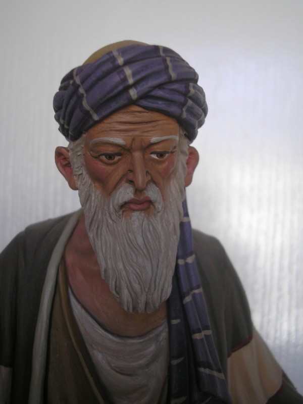 Intentando responder a todos los temas que vais planteando os voy a decir como "nació" esta figura. Leyendo en El País un artículo sobre pescadores franceses,había una fotografía de un rostro que me llamó la atención por sus rasgos.La recorté y se la llevé al artesano para que le sirviera de modelo.