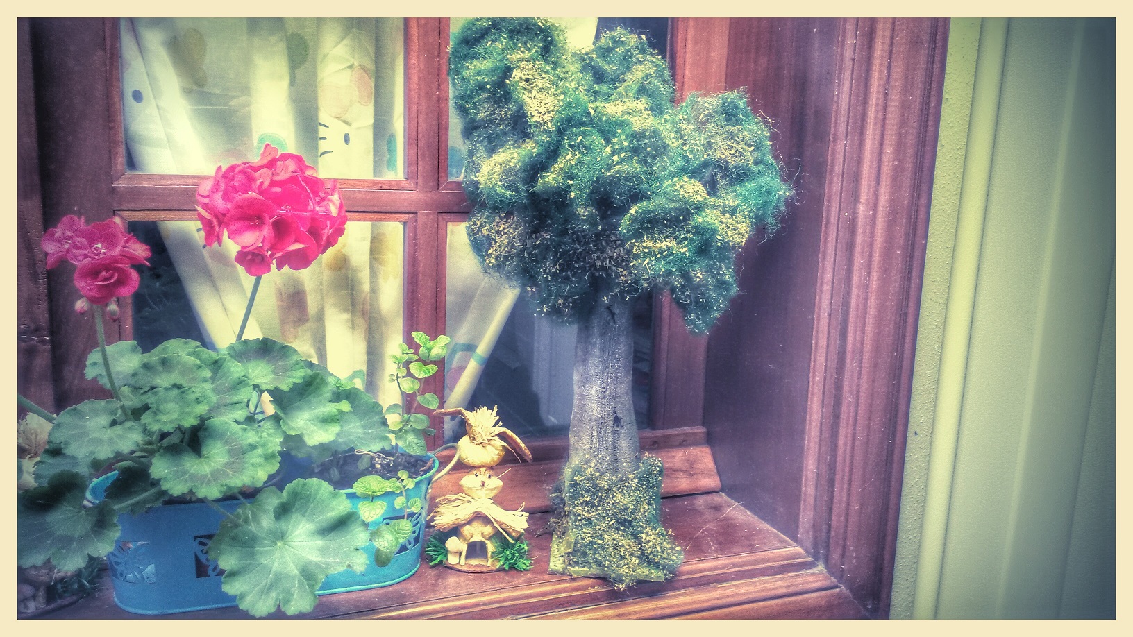 Mi pregunta ahora es para ti: has utilizado el cebollino directamente como soporte para echar el orégano y el verdín artificial ?? si es así no tiene que ver con el trabajo que expongo, no he utilizado nunca esa planta por tanto de lo que desconozco no te puedo hablar. He utilizado precisamente la lana de hilo por tratarse de un material más compacto y moldeable y no natural para que conserve siempre las mismas propiedades
