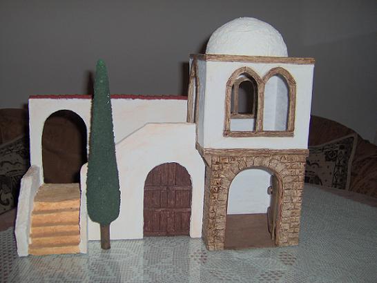 Hola a todos. David Caro me alegra que te gusten las casas, supongo que la que vas a copiar es la de la primera foto, un dia vi una foto de un belen que tenia una casa que me gusto y decidi hacerla adaptandola a mis figuras y aunque no quedo exactamente igual a la que vi nos gusto el resultado.El efecto de las piedras no tiene ningun merito, puesto que son piedras de verdad. Si vas a cualquier rio en sus orillas veras arena solo tienes que recoger las piedrecitas mas planas y pequeñas que encuentres. En la casa 3 esta construida de madera de contrachapado y forrada de pasta de modelar,con la pasta humeda doy una mano de cola blanca de madera y voy pegando las piedras una a una apretando un poco con el dedo para que se introduzcan un poco en la pasta y ya esta, solo queda esperar que la pasta endurezca. Espero haberme explicado bien , si no es asi ,preguntame lo que no entiendas.