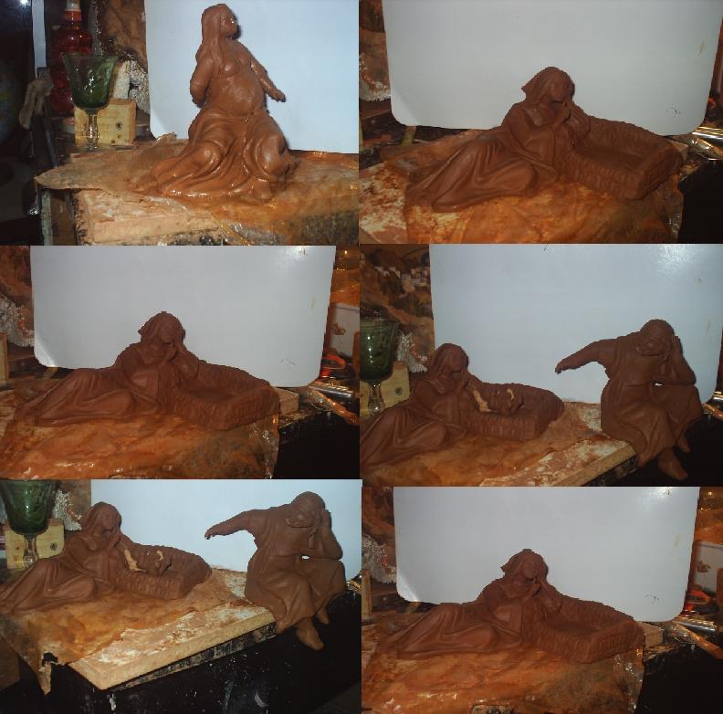 Ahora voy a tratar de subir otras fotos, incluyo la misma de la madre y el hijo con los cambios definitivos, tambien el grupo que lo va a componer , aclaro que falta terminar, brazos , piernas y manos pero igual sirve para imaginar como va ser finalmente. Una foto de la figura de María embarazada y me falto fotos de la figura de José, pero ya viene, ahora terminar y esperar que se sequen y al horno. Un abrazo y siempre Dios bendiga.