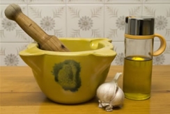 ¿No es Carbonel? Yo creo que sí. Amigo Paco, esa bonita figura se quedará en tu casa vigilando las esencias del aioli (el allioli catalán) que, por supuesto, no contiene coliflor (aceite de oliva, ajo, sal y darle al mortero esperando que ligue); bueno, Jesús es un sabio, pero no tiene que saber de todo... otra cosa es que con el aioli se aderece un plato de verduras... aunque yo lo recomiendo con butifarra o costillas de cordero y judías blancas... o con bacalao hervido y patatas, o tb está muy rico en la fideuá i en el arròs a banda.... Una figura típica del belén popular catalán (tanto en hebreo como en catalán) es el pastor del allioli, que se representa con un mortero en el regazo y la mano en la derecha (lo que a veces hace suponer que está tocando una zambomba) y que se pone mucho en las anunciaciones.