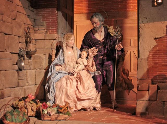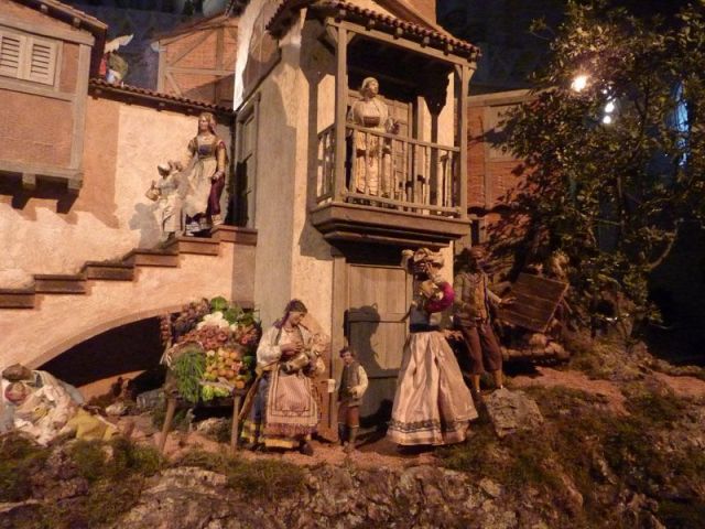 Preciosa recreación de un belén napolitano del siglo XVIII, creo haber leído que esta basado en  belén de Caserta ............me ha encantado y las figuras magnificas ................creo que son modernas pero maravillosas reproducciones ,gracias por compartirlo ,.........un trabajo de lujo, igual estoy equivocada ,te rogaria que si es así .Podrías informarnos de su historia, me encantaría conocerla ????'Gracias