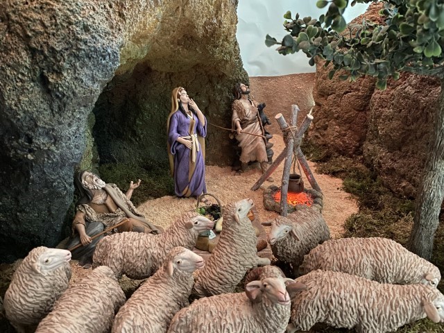 Por si hay alguien interesado en saberlo y aunque estemos en el post de Javier Guilloto y vayamos a hablar de otros artesanos, las ovejas son de Villarán y el conjunto de miniaturas que componen la merienda de los pastores está hecho por Adrián Navalón que corresponde a la firma Artes Belenes Chinchilla. Reconocimiento también para ellos por su Arte.