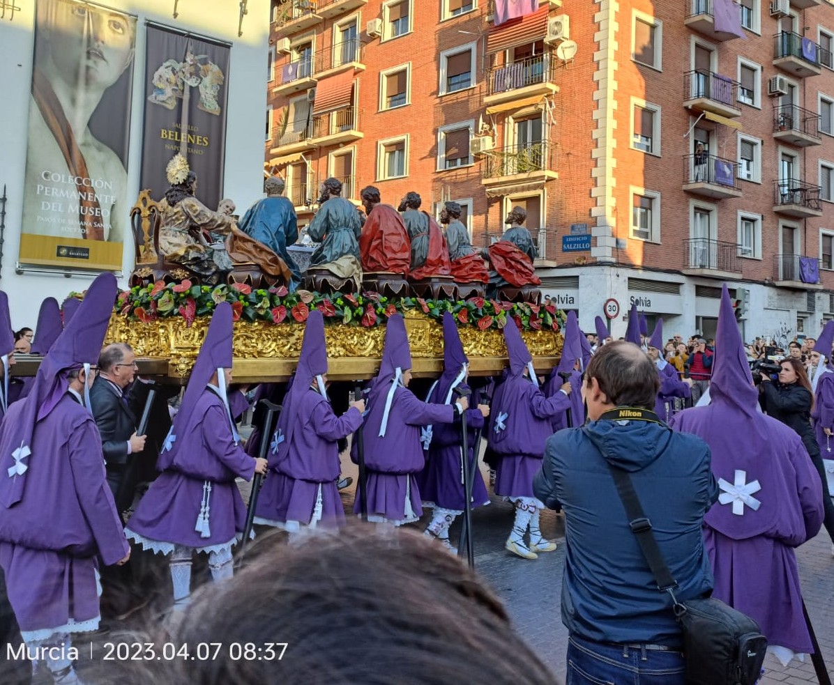 Aunque tampoco hay mucho más que aportar a los datos en el hilo, aprovecho el viaje a Murcia en Semana Santa para retomarlo y en concreto la visita a Salzillo que fue 'capicua' y muy edificante, el Viernes Santo vimos salir la procesión de Nuestro Padre Jesús Nazareno(la 'Procesion de los Salzillos') junto al Museo, con los famosos pasos del autor.