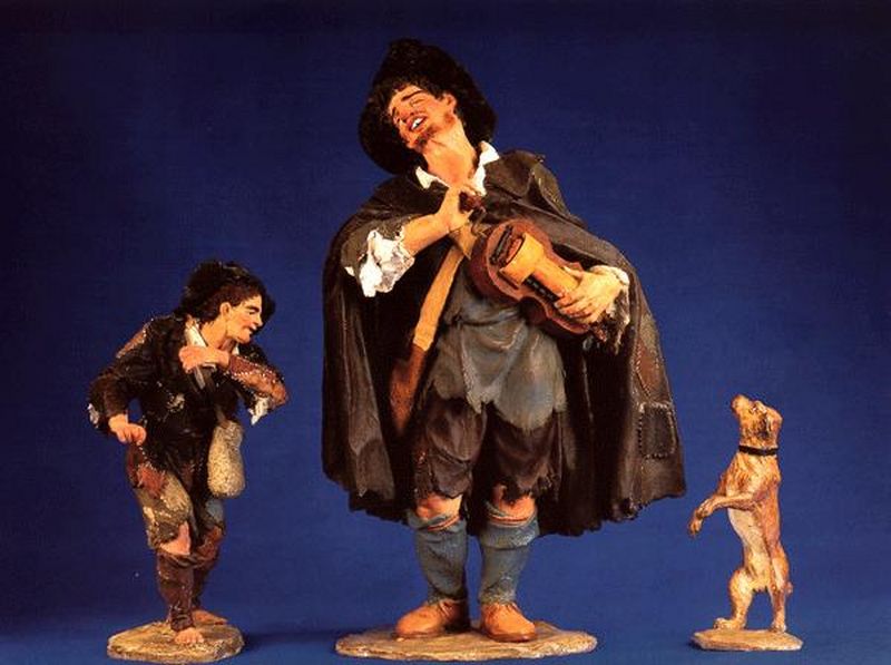20Ciego de la zanfooÃa [800x600].JPG (59KB - 428 descargas)Con la cantidad de figuras preciosas que contiene el Belén de Salzillo es difícil elegir....un grupo que me entusiasma es el de "La Lectura del Romance". Los rudos campesinos escuchando un Romance...pintorescos personajes contemporáneos de Salzillo, presentes en la pintura costumbrista, los tapices y en el mundo castizo de comedias y sainetes. Una perfecta galería de tipos humanos, con retratos increíblemente realistas, un muestrario de gestos y posturas...son retratos de una época