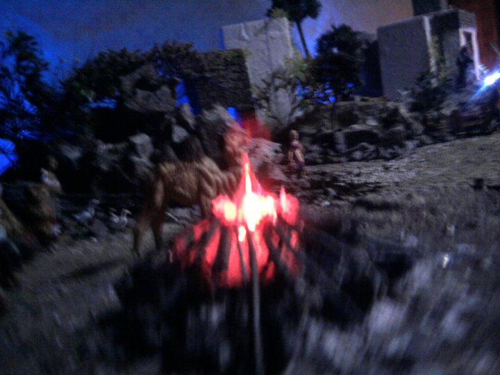 Para los curiosos, en el belén Parroquial de este año, he introducido prácticamente todos los fuegos descritos y en particular la fogata que ha tenido bastante éxito, combinada con un juego de espejos para alejarla del espectador.