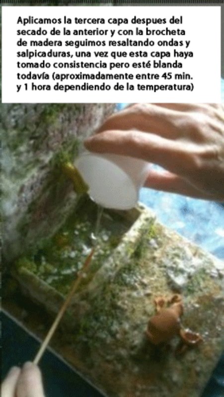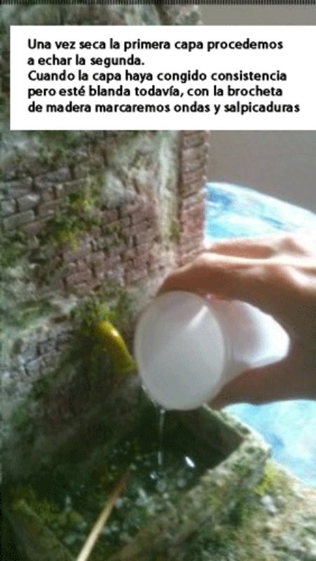 Otra forma de utilización de la pintura es el poder teñir ligeramente la resina; yo en el rio que hice en el belén pasado del Descanso en la Huida a Egipto, en el río utilicé unas gotas de azul ultramar para darle un ligero tono muy suave a la resina con lo cual conseguí un mayor realismo en aguas profundas; en fin todo es ir experimentando para poder llegar a conseguir aquella idea que tenemos en la cabeza.
