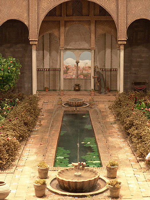 Aprovechando la ocasión por las fotos del Generalife de Granada puestas por Luis Ángel, adjunto un par de fotos de una recreación que, sobre dicho entorno, realizó Manuel Alberto Cervera Vázquez (sobre los 18 años tendría por esas fechas) para ubicar el Nacimiento en su casa en 1996.