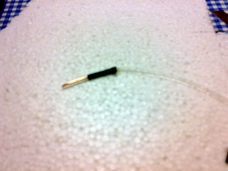 FOTO 22 Y 23: Calentamos ligeramente, el extremo vacio del cable con un mechero, y una vez ablandado ( cuidado de no quemarlo ) introducimos el nylon, una vez hecho esto con la ayuda de los alicates, curvamos el cable.