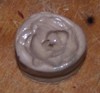 1- primero realicé el molde de la cabeza de león. para ello tomé una bolita de masilla, y le "aplasté" la cara de un león de plástico previamente embadurnada en aceite de cocina, para que no quede pegada a la masilla.