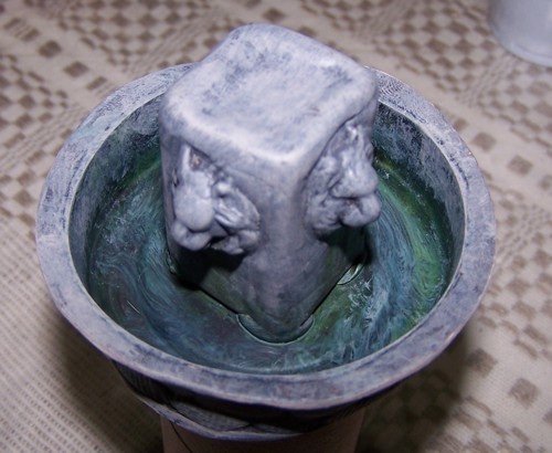 Bien, esta es la fuente que adornará el pesebre de este año, está realizada principalmente con masilla Epoxi, no se con que nombre se conocerá en otros lados, pero es la que viene en dos componentes que se deben mezclar, y una vez dura, es impermeable y resistente. Además se puede lijar, cortar con sierra, etc.