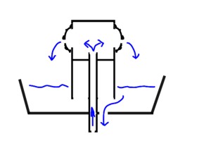 5- una vez seco, le puse una base de porexpan atravesada por el tubo de una lapicera bic (todo aislado con la masilla). y cubrí la parte superior con una tapa, también de masilla.