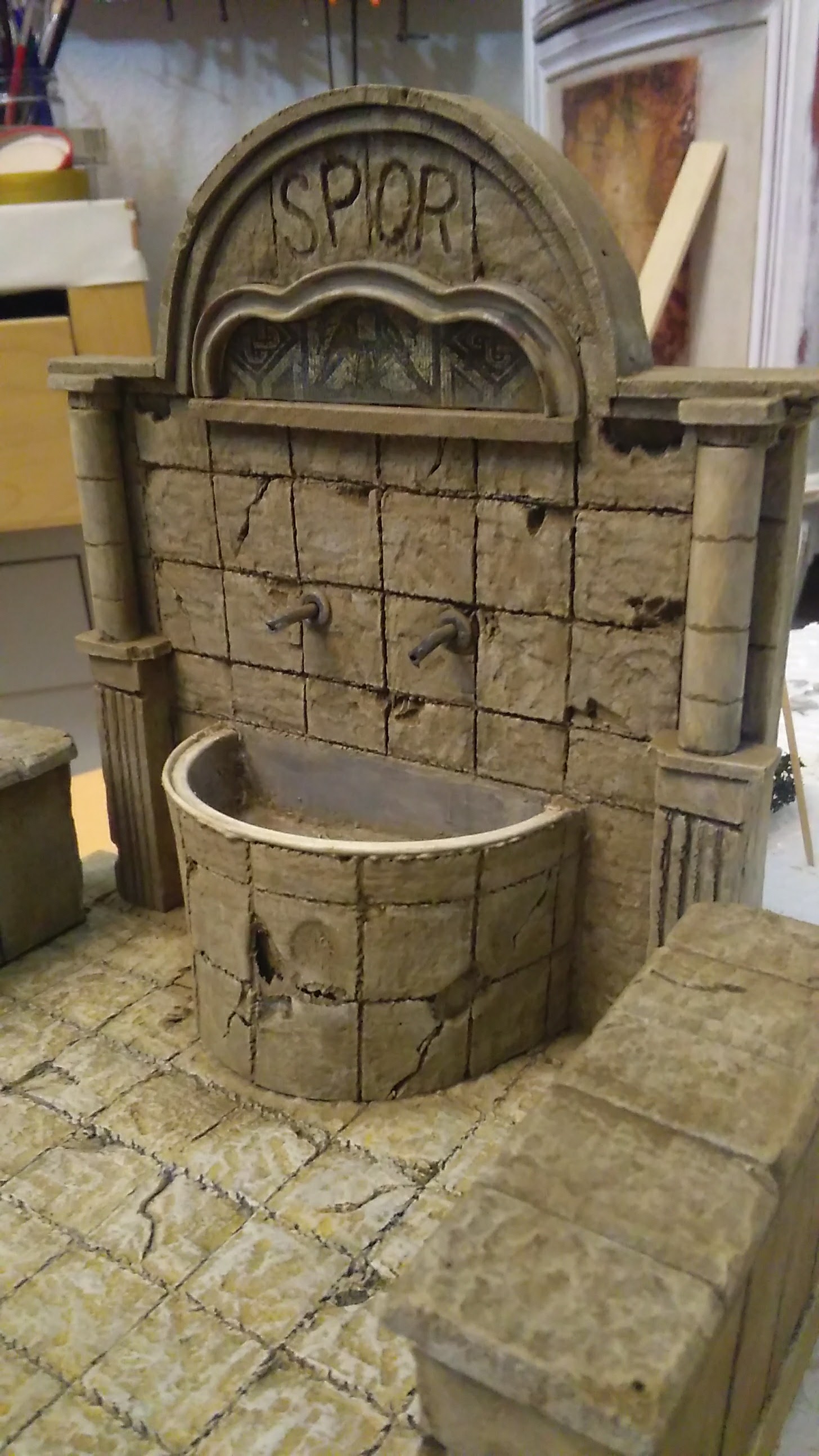 Buenos días, aquí os dejo unas fotografías de la fuente romana que estoy haciendo para figuras de 12 cm.