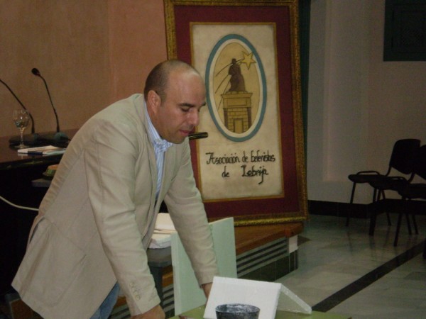 El logotipo oficial de la asociación, representa, en el interior de un óvalo dividido en dos, en colores celeste y blanco, la estatua de Elio Antonio de Lebrija situada junto a la plaza de España de dicha localidad, en colores beig y marrón claro con un fondo de color marfil. Detrás de dicha estatua, figura la estrella de oriente, en degradado amarillo más claro en el centro que en sus bordes, con cinco puntas y tres rayos en su cola. Alojado bajo todo el conjunto, figura escrito el nombre de la entidad dispuesto en dos líneas: