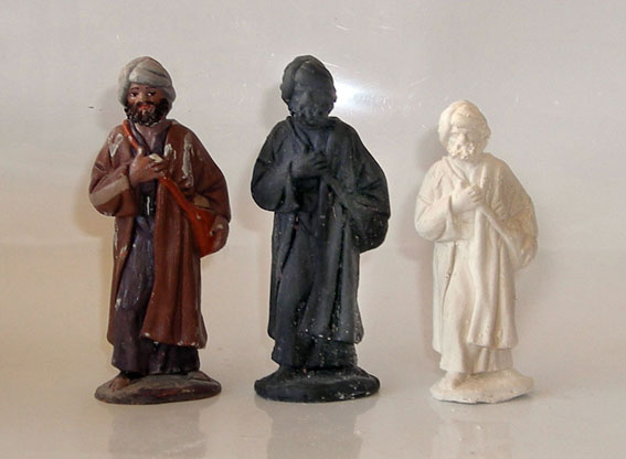 Ahora la experiencia, cogí una figura mia de Mayo de 16 cm.y le hice un molde de silicona blanca normal de barra,(como siempre de los chinos por su precio) le di una capa, espere su secado y otra y otra, hasta llegar a 1 cm. de grosor mas o menos, saque la copia y, perfecta para pintar, me dije -es barato y facil el procedimiento -y pintandola de otros colores o transformándolas un poco ya tengo una mas, se han pasado tres meses de aquello, el jueves cogi de nuevo el molde y vi que habia cambiado pues era mas bajito y mas delgado,apenas unos milimetros,he hice otra copia,y ahi mi sorpresa cuando la saque habia cambiado de talla,media 14 cm. escasos,eso si perfectamente proporcionada,y lo mismo con otras dos de Mayo tambien en 7 cm. ahora 5´5 cm. asi es que si quereis empequeñecer vuestra coleccion ya sabeis,os pongo las fotos orientativas.