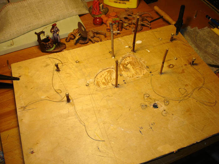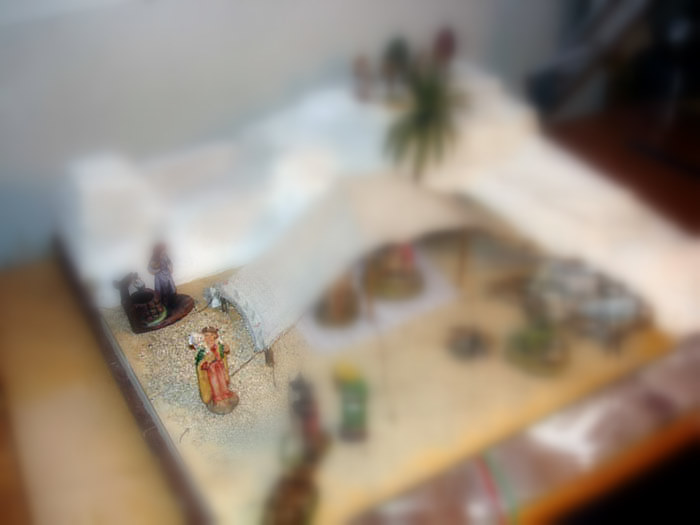 Lo que pasa Memen, es que Luis está de c...y esto es bueno. Muy bueno. También diré que en la haima hay un anacronismo y es que uso corderos (¿dónde encontrarían hierba en un terreno desértico?) cuando tenía que haber colocado cabras. PERO, no encontré cabras del tamaño adecuado, pequeñas, para 5-6 cm. Alguna tengo, pero en cantidad insuficiente.