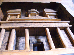 Buenas tardes, gracias por contestarme tan rapido, como dije, aqui les dejo ejemplo grafico de lo que se pretende, la maqueta esta coloreada con tinte al agua muy diluido color melocotón para que quedara lo más transparente posible y pintado sobre papel normal en blanco y negro de impresora láser, por lo que no es el color real como el de la primera imágen que puse, lo que quiero es imprimir un plotter a color como la foto de muestra, y la observación sobre retocar las sombras no creo que sea necesario, pues las piezas que conforman las columnas, al tener solo la vista del frente, pensé en hacerlas de dos maneras, una ir duplicando la imágen hasta completar el desarrollo de la circunferencia y dos, que es como lo he hecho, en vez de duplicar he distorsionado, es decir, he alargado la imágen deformandola, por lo que el efecto sombra ya no será tán pronunciado, quedando las columnas de distinto color , eso sí, no queda más remedio que séa simetrica la imágen, también se podría alternar las columnas en distintas posiciones con lo que el efecto de sombreado tambien se quedaria disminuido.