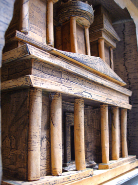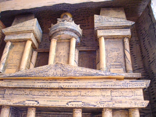 He conseguido una nueva foto de Petra, que esta vez va a ser tal cual el original, las columnas distintas, asimetricas, los motivos diferentes en cada lado, etc.