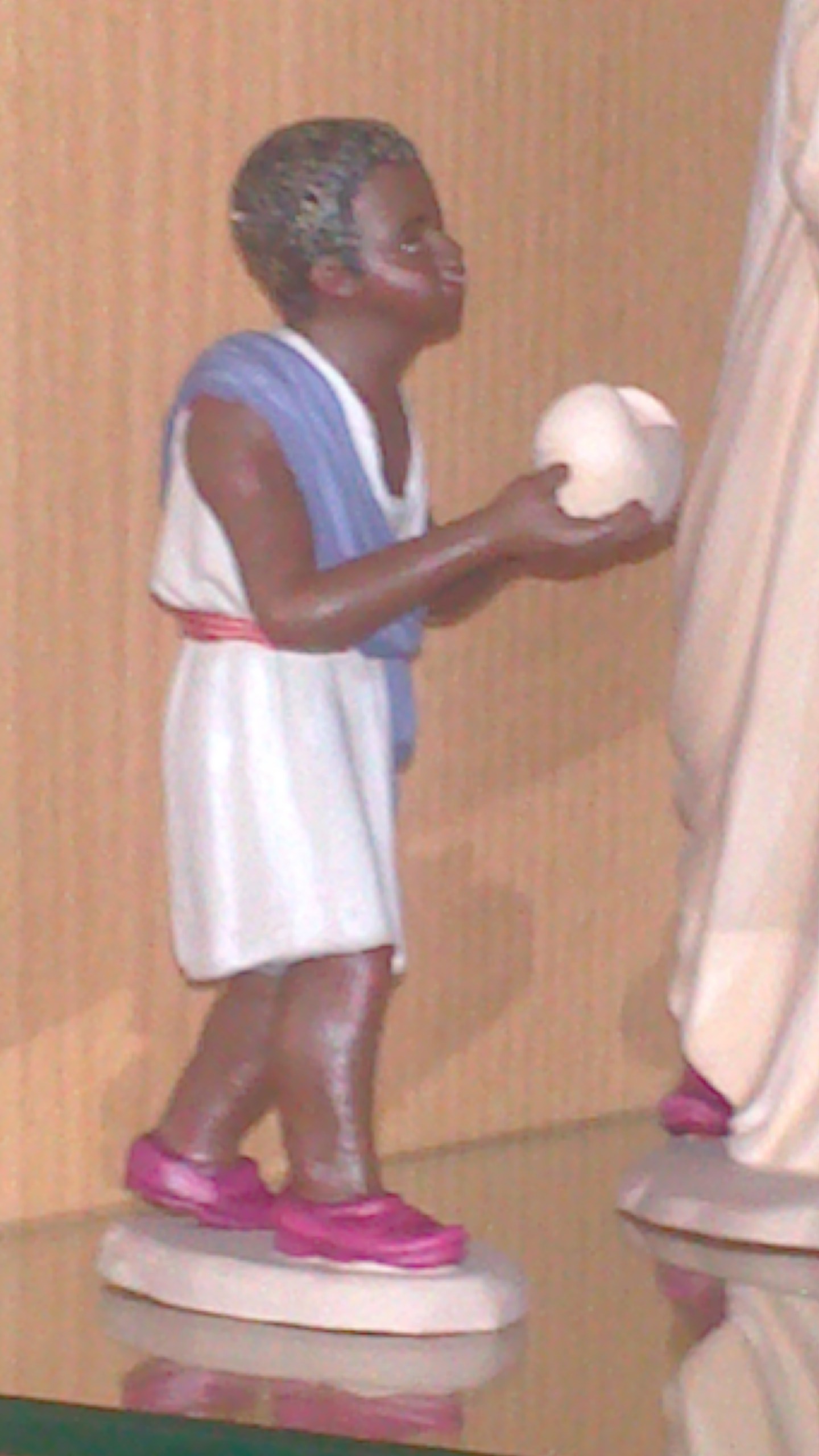 eso lo encontré varias veces en las figuras francesas de yeso pintado , de la tradicional fabricacion Devineau de Nantes , tienda dicha " Al Petit Bon Dieu " , hoy cerrada .