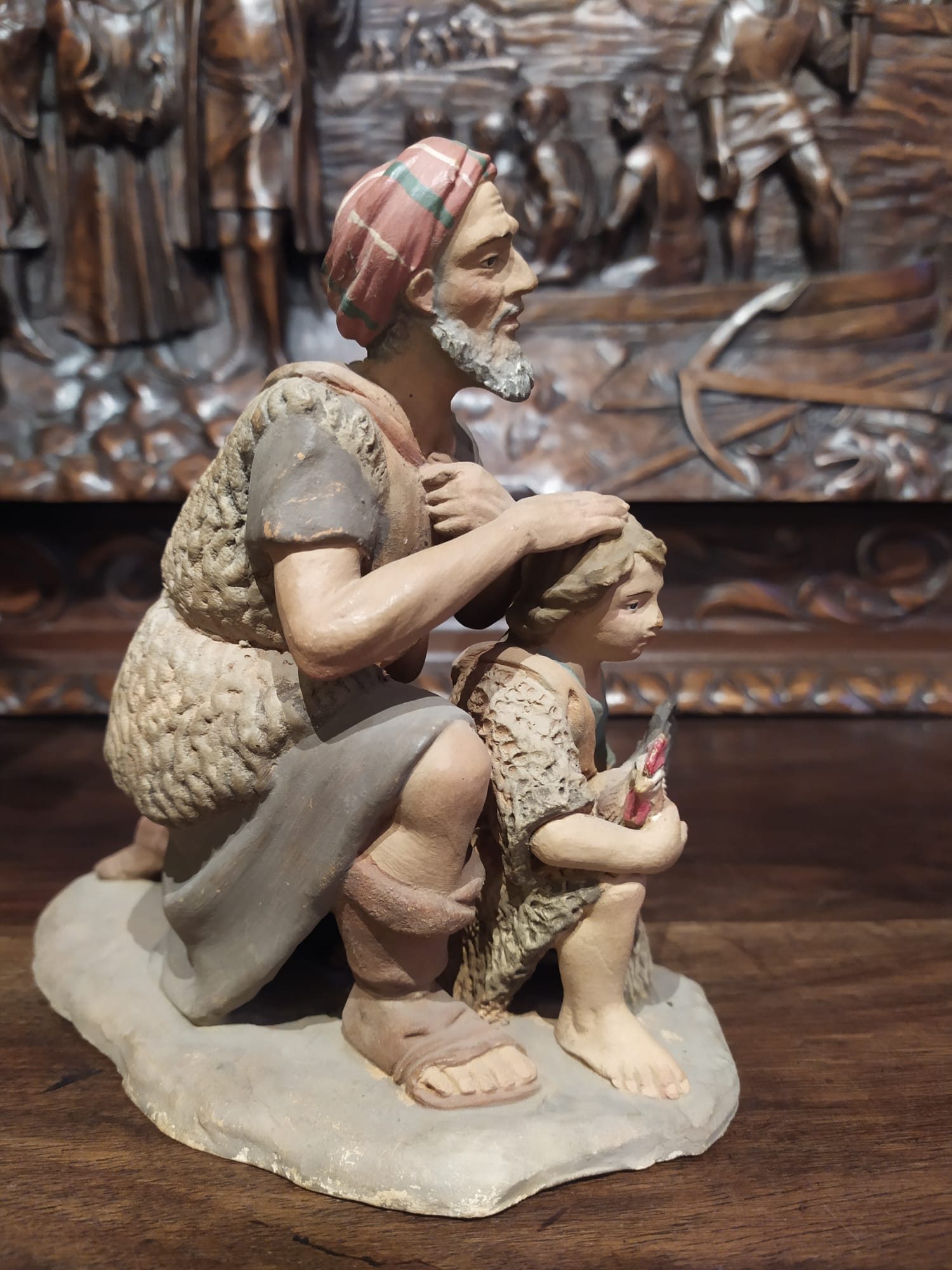 Otra figura de transición de los moldes del Avi y los moldes H.Castells (Martí Castells), parece en la misma línea de trabajo que la de la colección de Tunito: Padre e hijo pero cambia en vez de adorando ante el nacimiento de Jesús como Anunciación de los pastores.