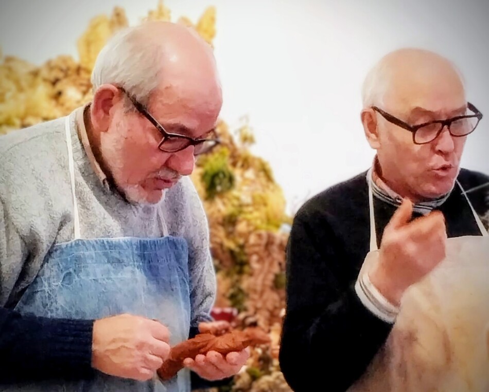 En primer plano, las de molde, al fondo las de 'palillo', enmedio la mano del artista aparece como símbolo de la dedicación artesanal. El taller de Castells, con su legado, encarna una tradición viva, donde la mano que modela y el molde que multiplica trabajan juntos para preservar la belleza y el significado del belenismo en cada Navidad.