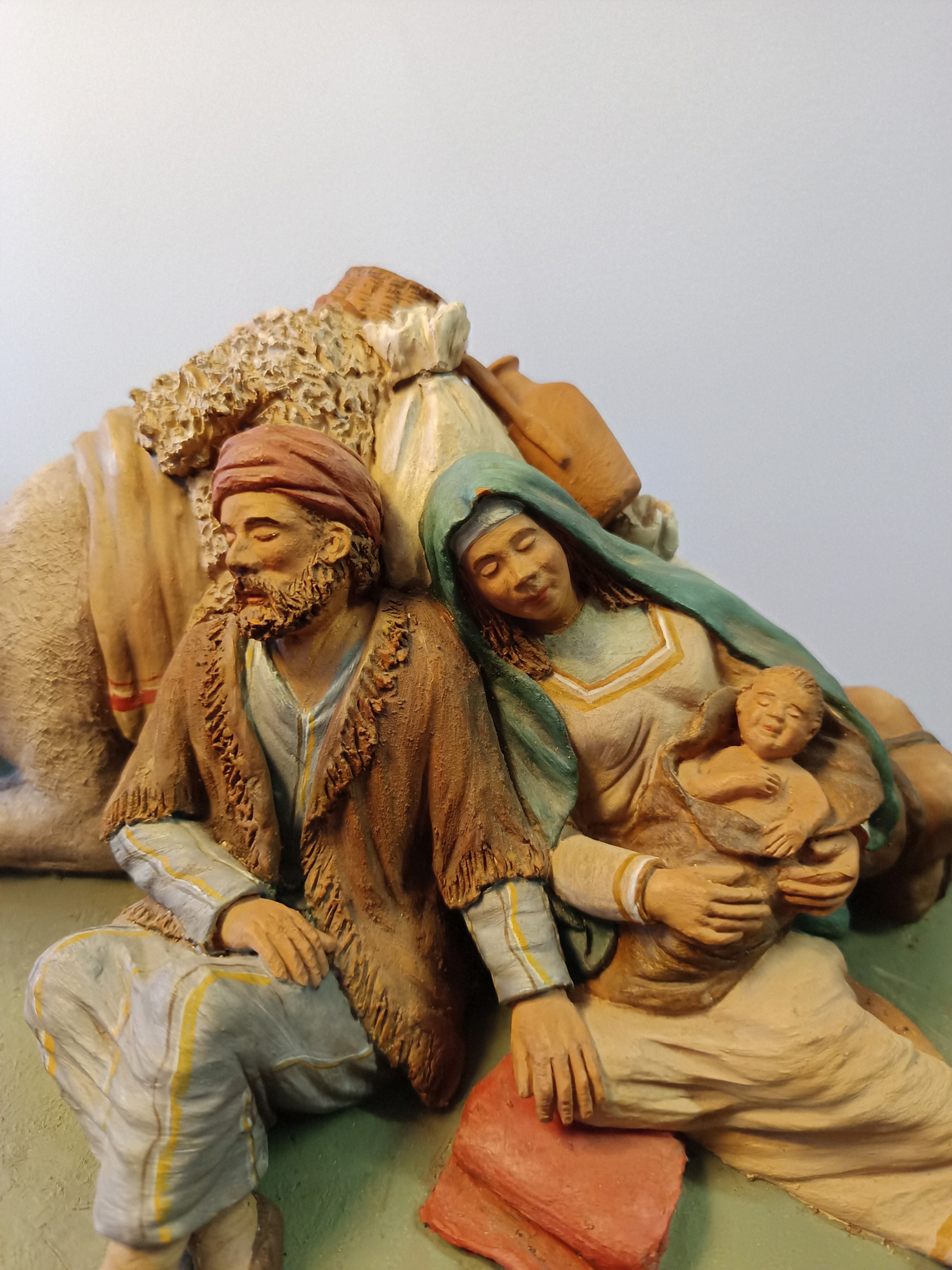 Drake - 12/1/2025 ...La Huída que ahora luce en las vitrinas de Félix es un ejemplo de que las figuras de belén tienen su propia histórica y que llevan una carga afectiva muy superior a lo que es la figura en sí misma. El conjunto fue un encargo que les hice yo. Ellos tenían una composición, de acompañamiento o boato, de un personaje durmiendo sobre un camello. Estaba bien, pero era sosa y no habían detectado su potencial. Yo les dije que añadieran a la Virgen y al Niño para hacer una composición, sencilla pero resultona, de un "Descanso en la huída".