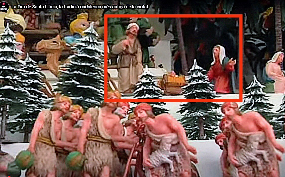 En otras capturas se ven las conocidas figuras de plástico: pastores en primer plano y, en la balda superior, uno de los nacimientos que reproducen la serie de figuras diseñadas por Daniel José Ursueguía. Estas figuras fueron encargadas por los Colomer y comercializadas en bolsitas individualizadas , lo que las hacía más accesibles y fácilmente adquiribles.