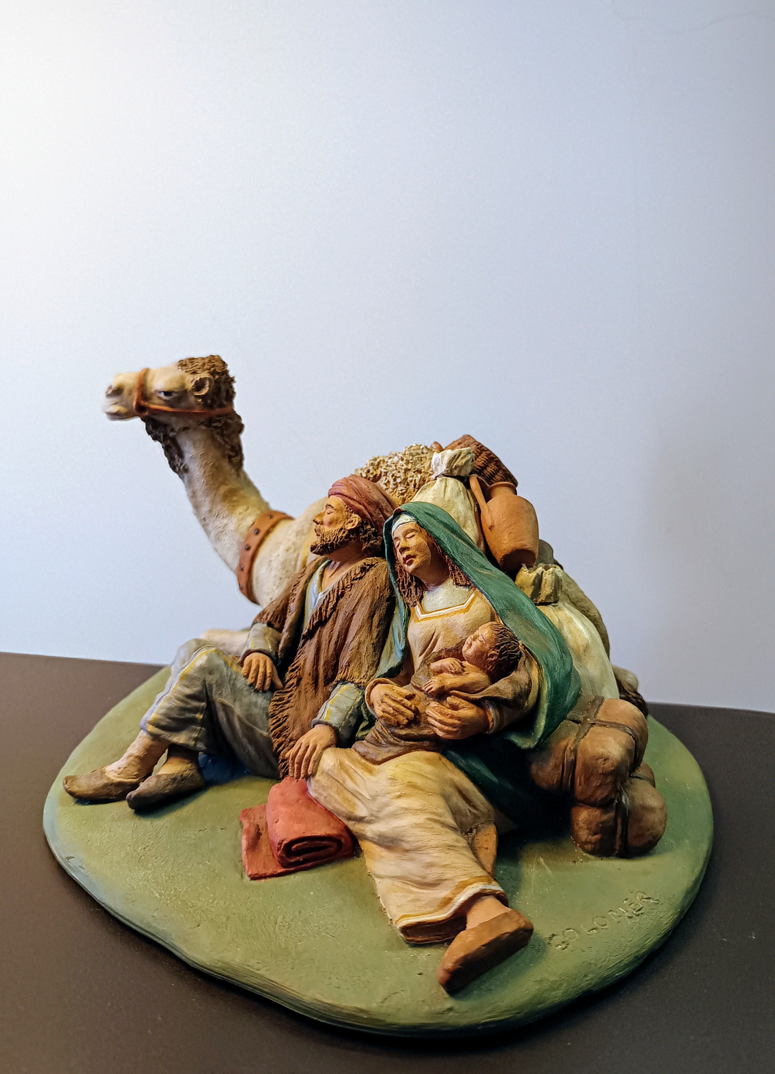 Drake - 12/1/2025 ...La Huída que ahora luce en las vitrinas de Félix es un ejemplo de que las figuras de belén tienen su propia histórica y que llevan una carga afectiva muy superior a lo que es la figura en sí misma. El conjunto fue un encargo que les hice yo. Ellos tenían una composición, de acompañamiento o boato, de un personaje durmiendo sobre un camello. Estaba bien, pero era sosa y no habían detectado su potencial. Yo les dije que añadieran a la Virgen y al Niño para hacer una composición, sencilla pero resultona, de un "Descanso en la huída".