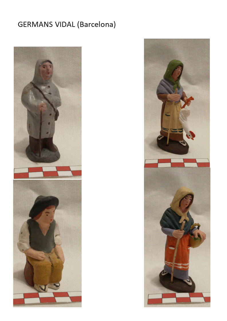 "A principios de los 70 mi hermana me compro en Santa Llúcia un belén comprado al señor lluis Vidal e hijos, son figuras de pesebre popular, cada año me compraba alguna diferente y solía ir al Poble Español a visitar la tienda, mi hermana tiene alguna que yo no tengo. Hace un par de años contacte son el hijo de Ramon Vidal ( Josep Vidal ) para a ver si me daba algo de información sobre mis figuras,..."