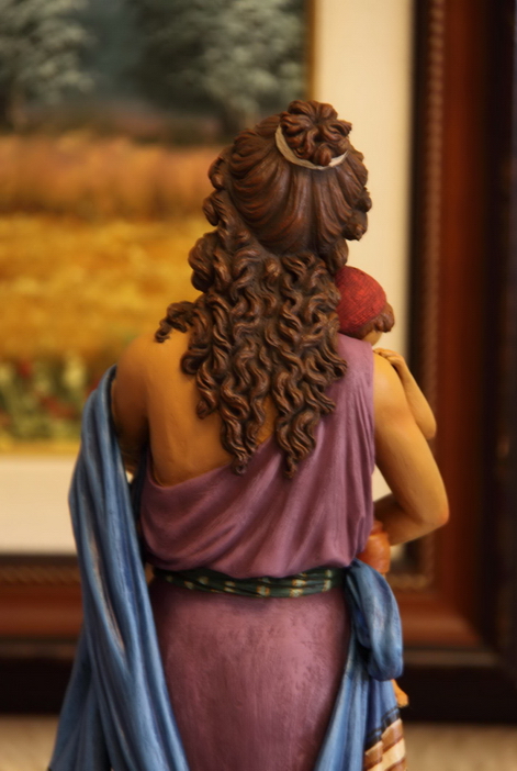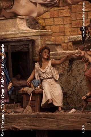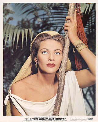 Hay que tener en cuenta que Hollywood, idealiza mucho a sus personajes y para hacerlos mas atractivos no escatima en cometer errores garrafales, como en este caso las vestiduras totalmente romanas de una pastora hija de un sacerdote judio que vivía en el desierto cuidando cabras, lógicamente, a esa belleza que era Yvonne de Carlo, no la iban a dejar salir con unas vestiduras poco atractivas, por lo que ni cortos ni perezosos la "encasquetaron" un vestido romano, escotado (que ni de broma llevarían las mujeres judías y menos en esa época) totalmente precioso y sugerente, además del peinado, ambos correspondientes a una época mucho mas moderna y dentro del Imperio Romano, pero Hollywood es así, copia y pone lo que se le ocurre para sacar un producto mas estético, asequible y comercial para que llegue al gran público; de ahí mi error de considerar a estas figuras de tipo romano ya que algo parecido ocurre con la otra pastora (por cierto también bellísima con un peinado romano tipo imperio).